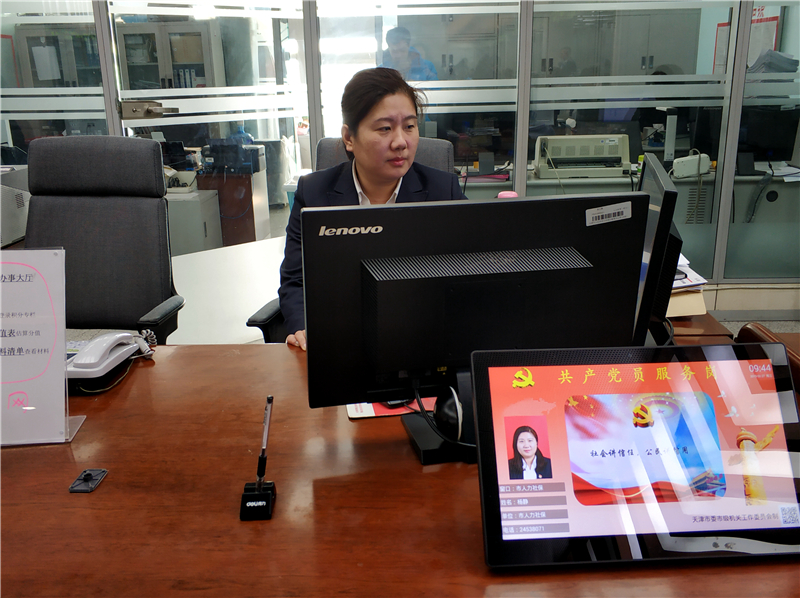 “我们这个部门共有10名工作人员,其中6名正式党员,4名女性党员占比67%。其他4名都是入党积极分子,党味儿十足、纯正”,有着22年党龄的年轻老党员政务服务部部长杨静(女)如是说。